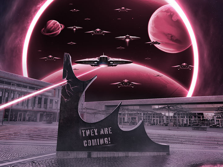 The Magentaversum takes over the Fulda University of Applied Sciences. The theme of the picture: The Pantone color of the year 2023: Viva Magenta!